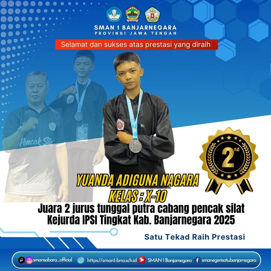 Dalam rangka mengembangkan potensi prestasi SMAN 1 Banjarnegara mengikuti kejurda pencak silat yang digelar awal Agustus 2025 di Banjarnegara.