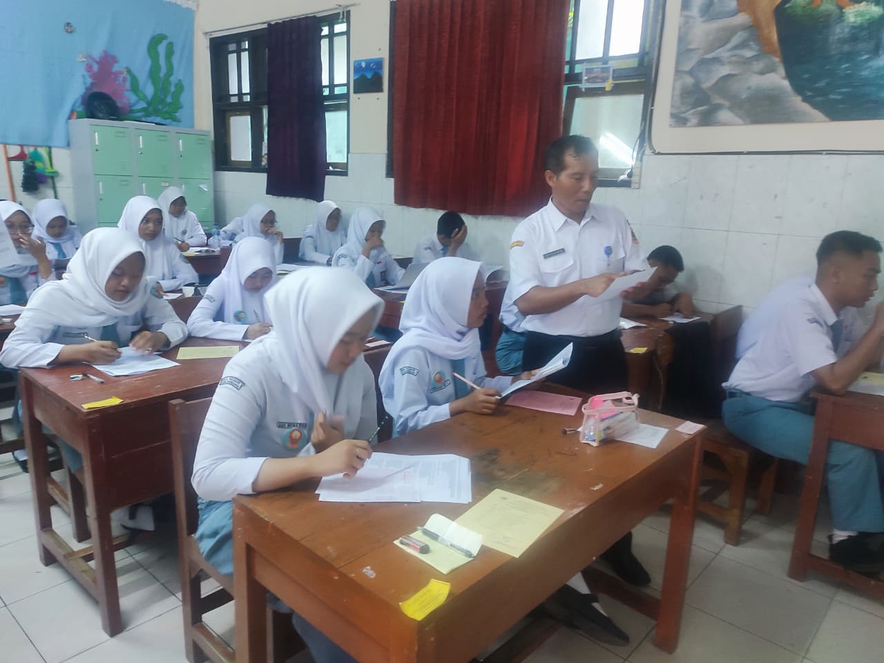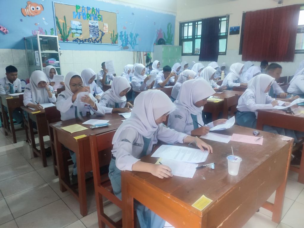 Siswa tertib mengerjakan soal-soal tes mapel yang diujikan hari itu.
